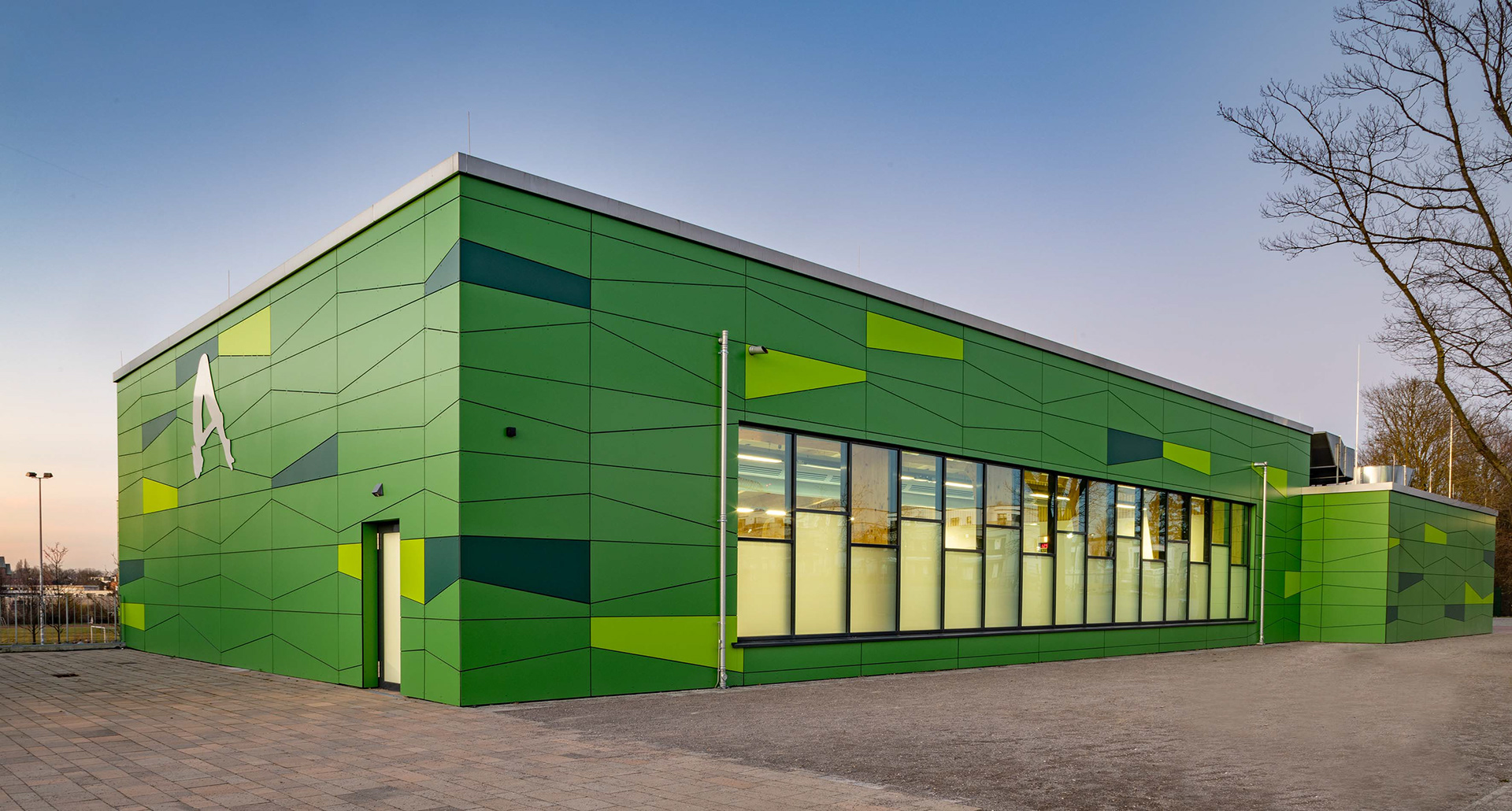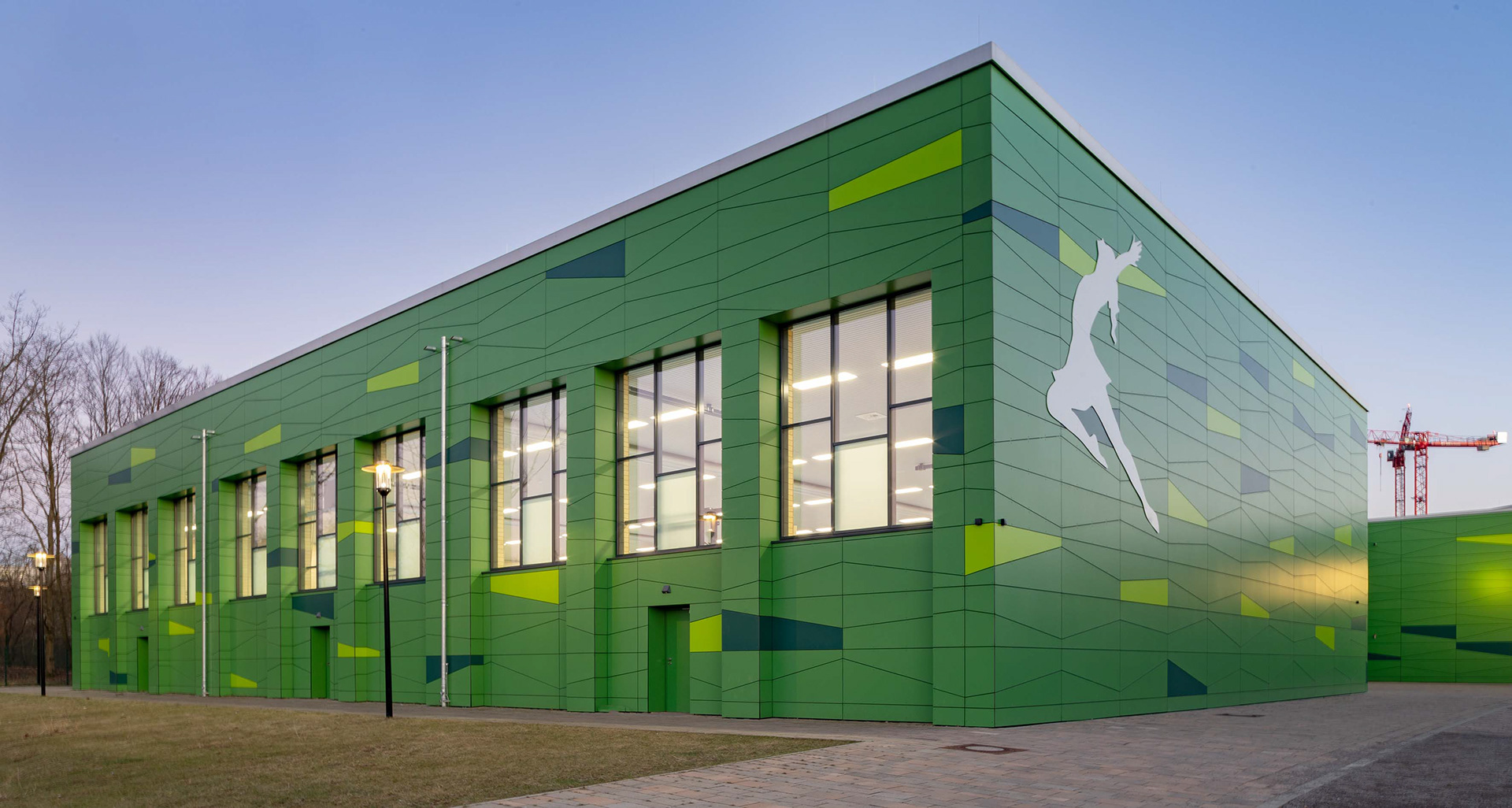 Fertigstellung der Trespa-Fassade an Turnhalle und Schwimmbad Schulzentrum Wiemelhausen, 2023 +2024