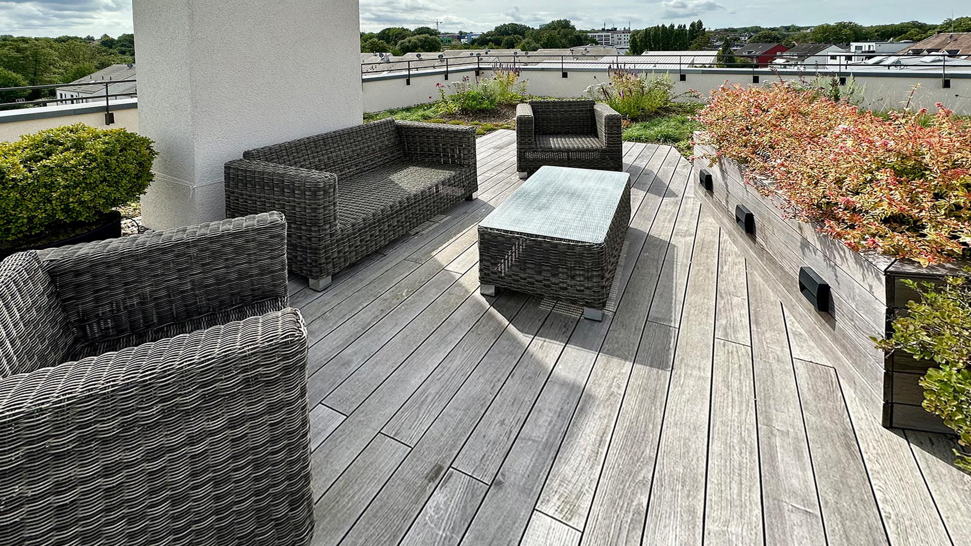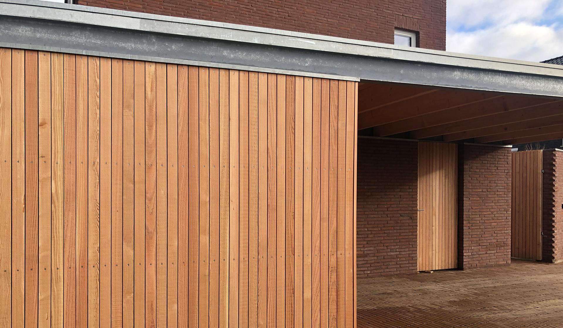 Sägerauhe Lärchverbretterung, Emsdetten, 2020, Zentrale Dienste Hochbau der Stadt Bochum