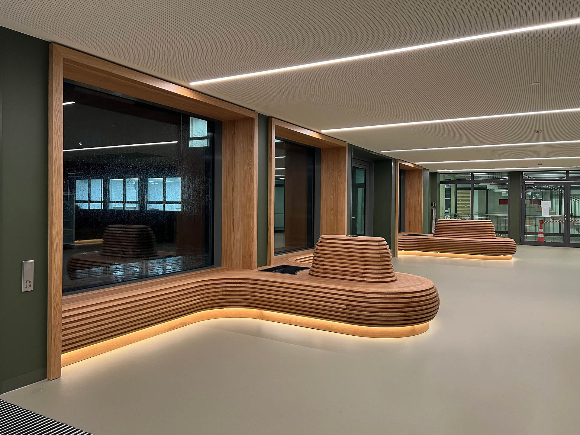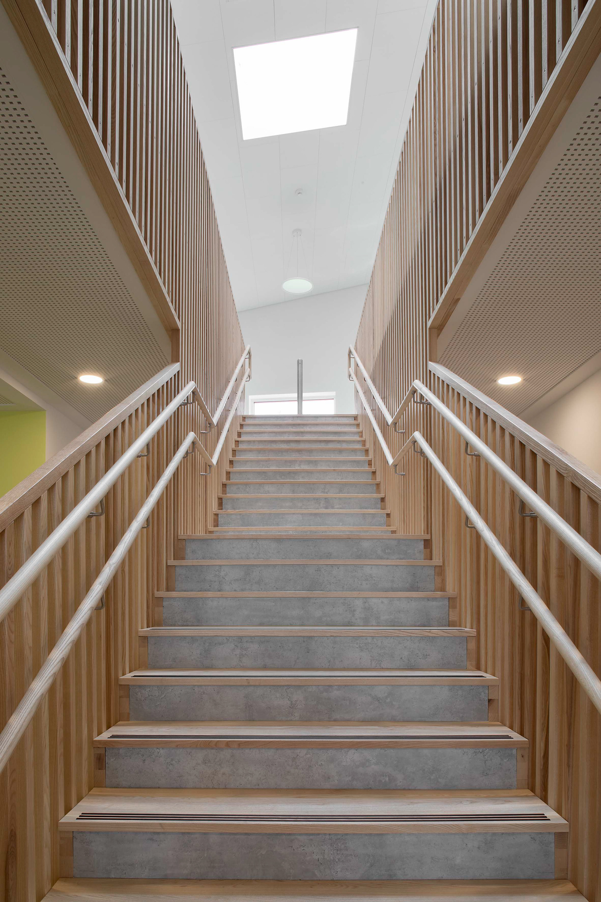 Kita Elisenstrasse, Treppenanlage Esche massiv, Stadt Essen, Büsing van Wickeren Architekten, 2020