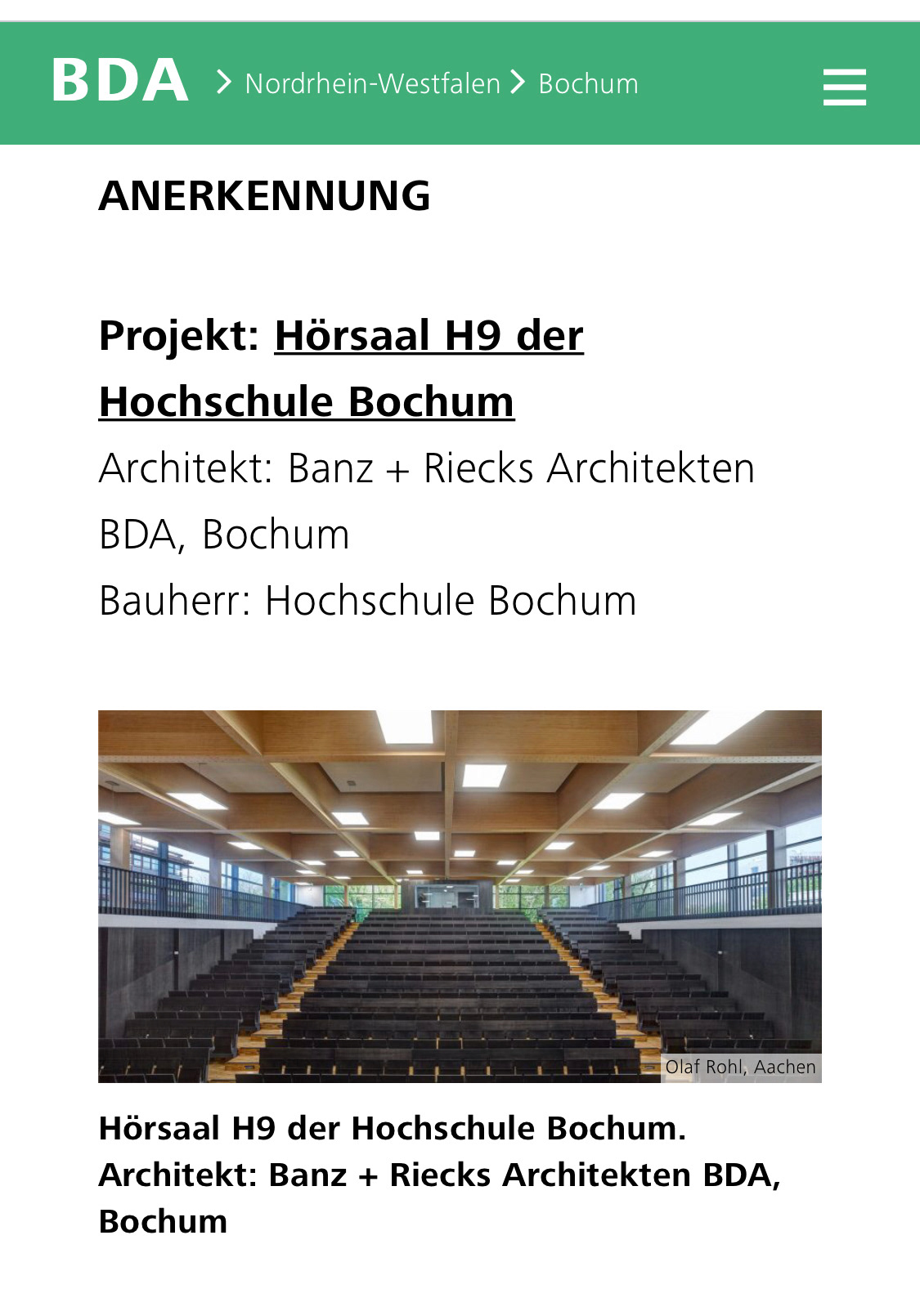 Hörsaal Hochschule Bochum, Banz + Riecks Architekten, 2019,